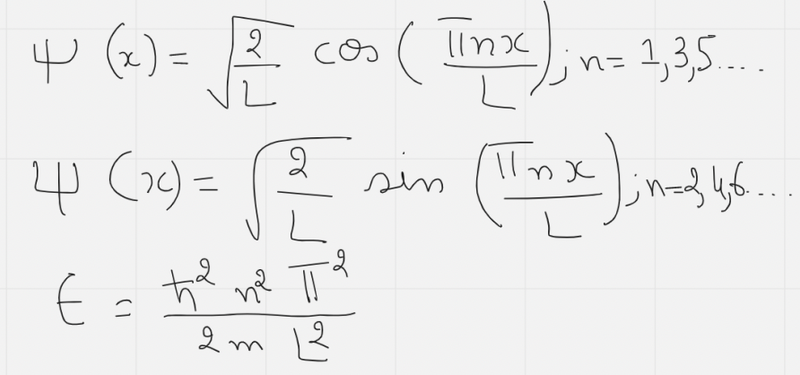 In The Schrödinger Equation, we are looking to find solutions for the energy E and the wavefunction ψ(x). Below you find an example of solutions to Schrödinger’s equation ( the box problem)