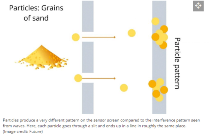 Before we get to that, let us understand the particle pattern in the double-slit experiment. You will see that particles will end up in a line mostly in the same place depending on the angle the particle passed through.